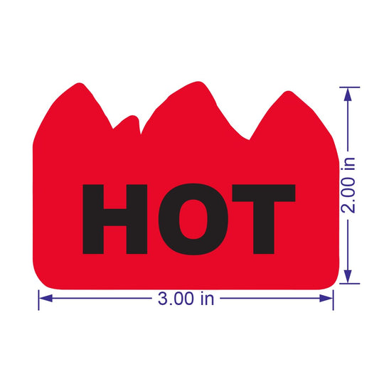 Hudson Exchange 3 x 2" (Roll of 500) “HOT” Flame-Shape Pressure Sensitive Labels, Fluorescent Red