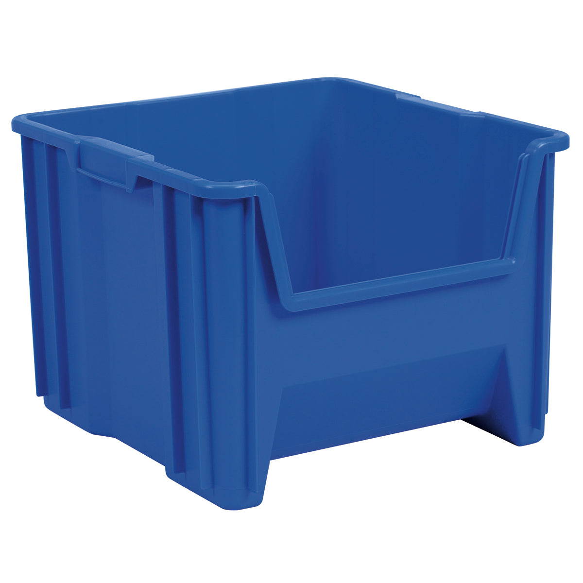Multipurpose hopper front containers, Stak-N-Store Bins are heavy duty stackable storage containers designed to hold almost anything. These durable plastic storage bins stack to form tall, stable storage arrangements on floors or standard industrial shelving. Quality construction makes them virtually unbreakable. 75 lb. weight capacity. Large radius corners and reinforced ribbing add strength and stability when stacked. Wide-hopper front allows easy access to bulky items. Large comfort grip handles make transporting easy.
