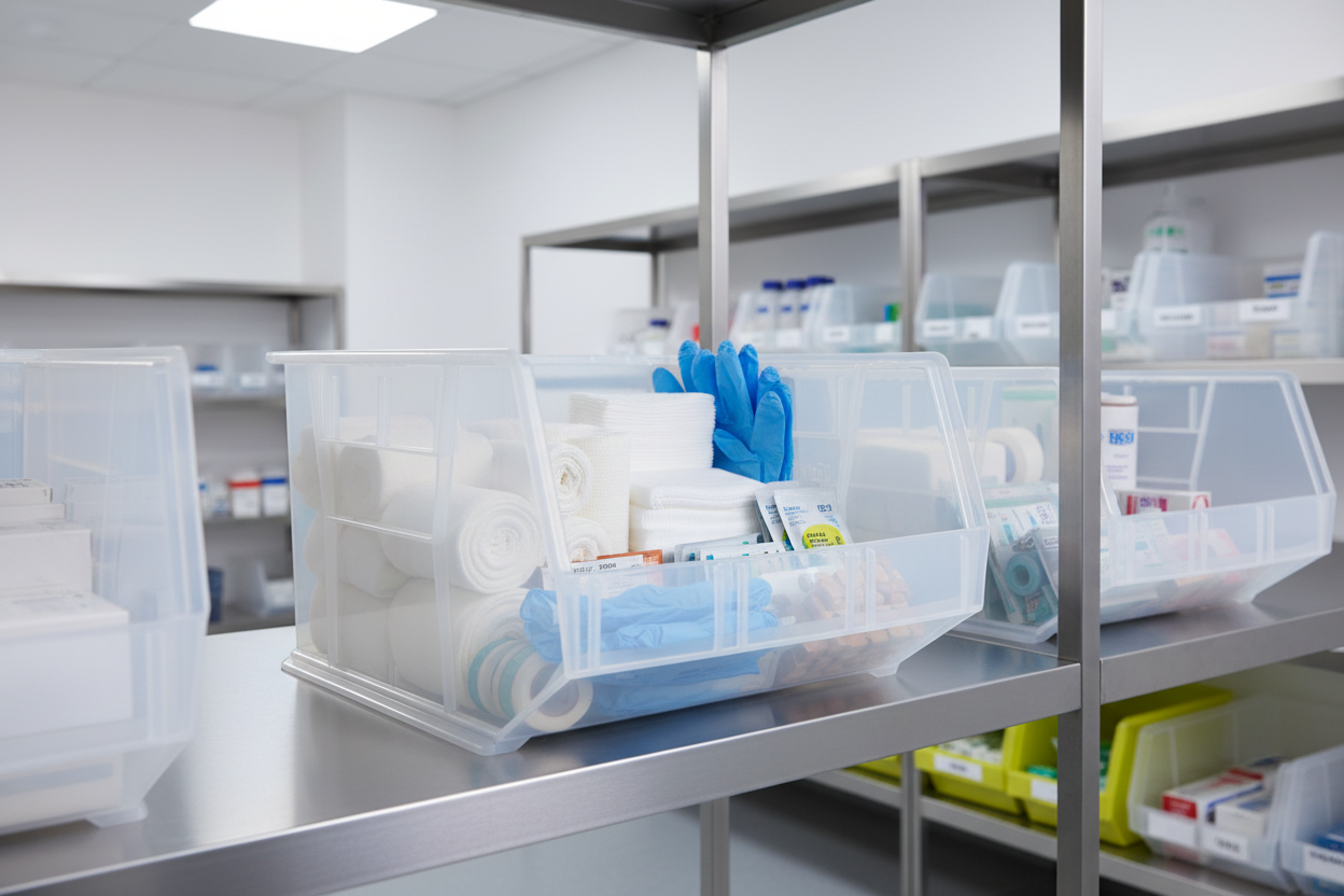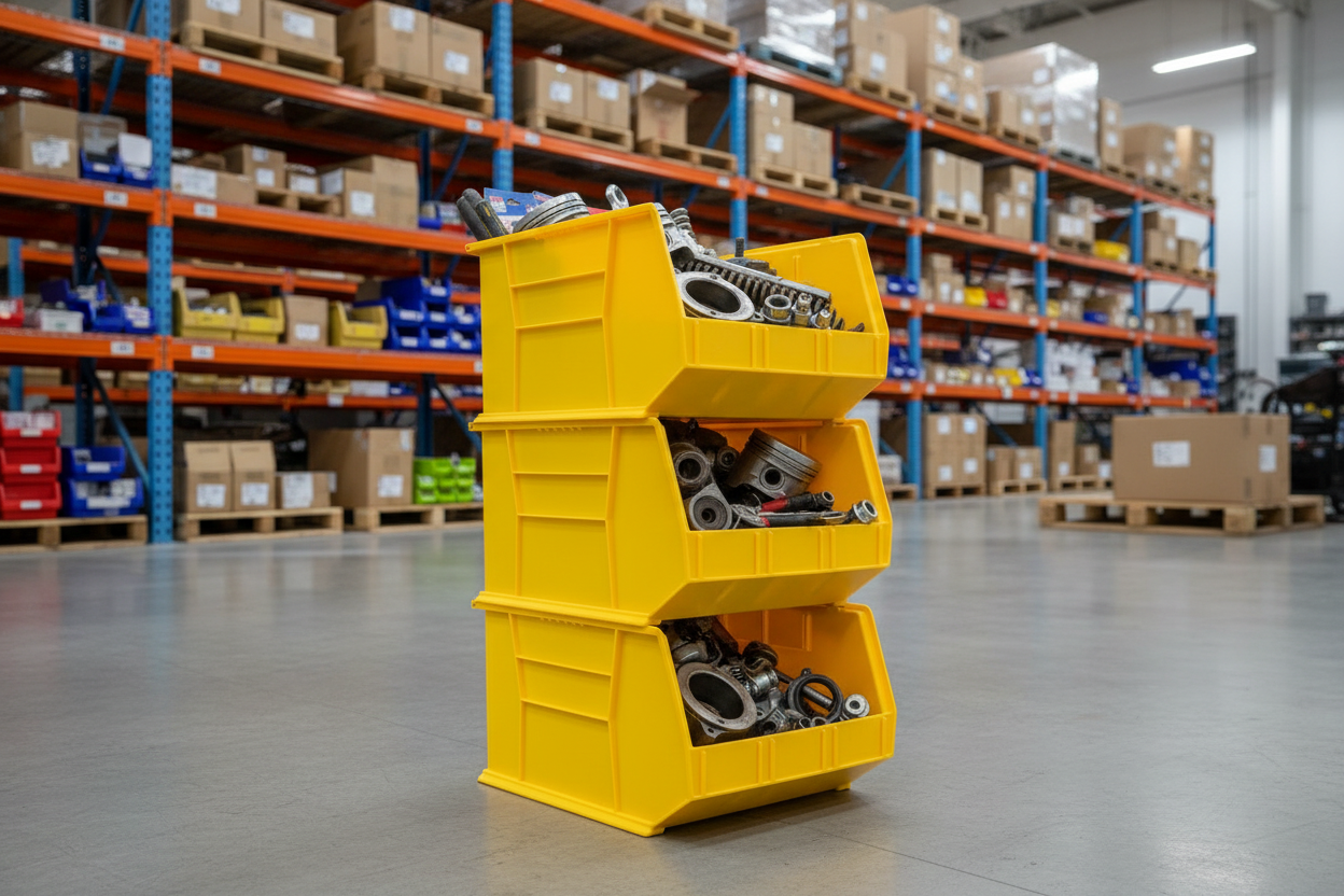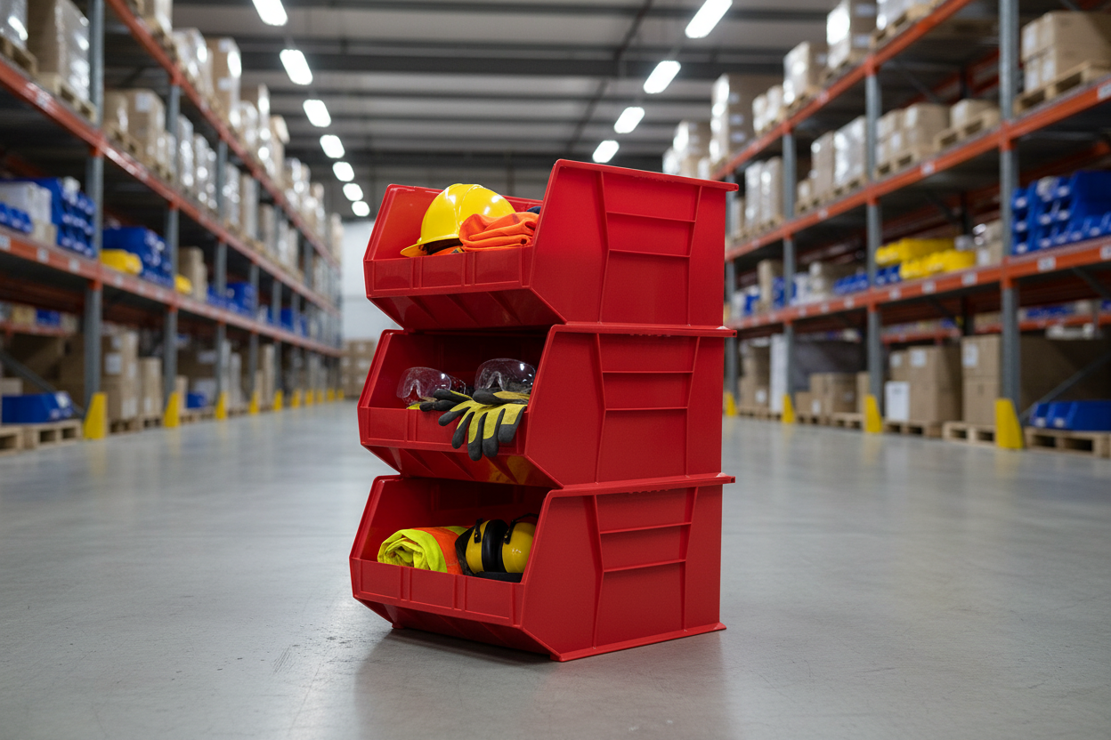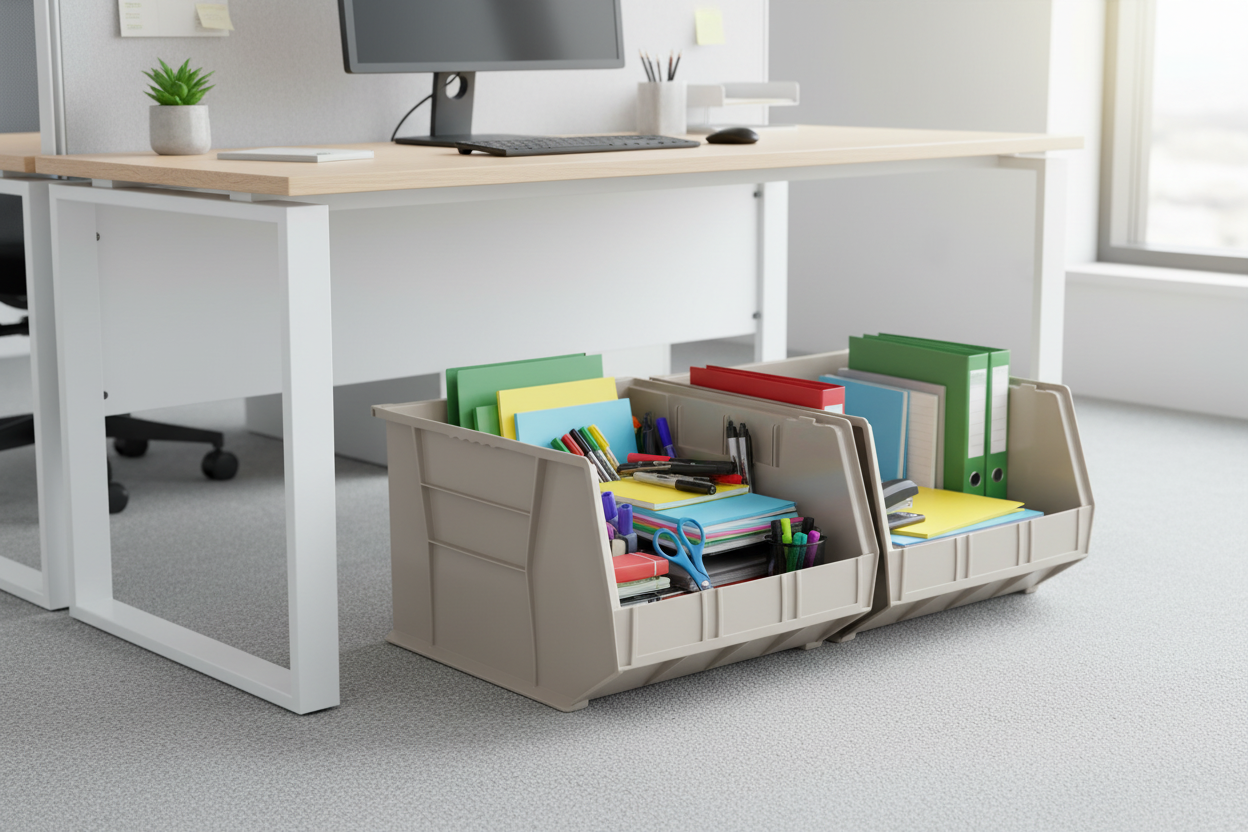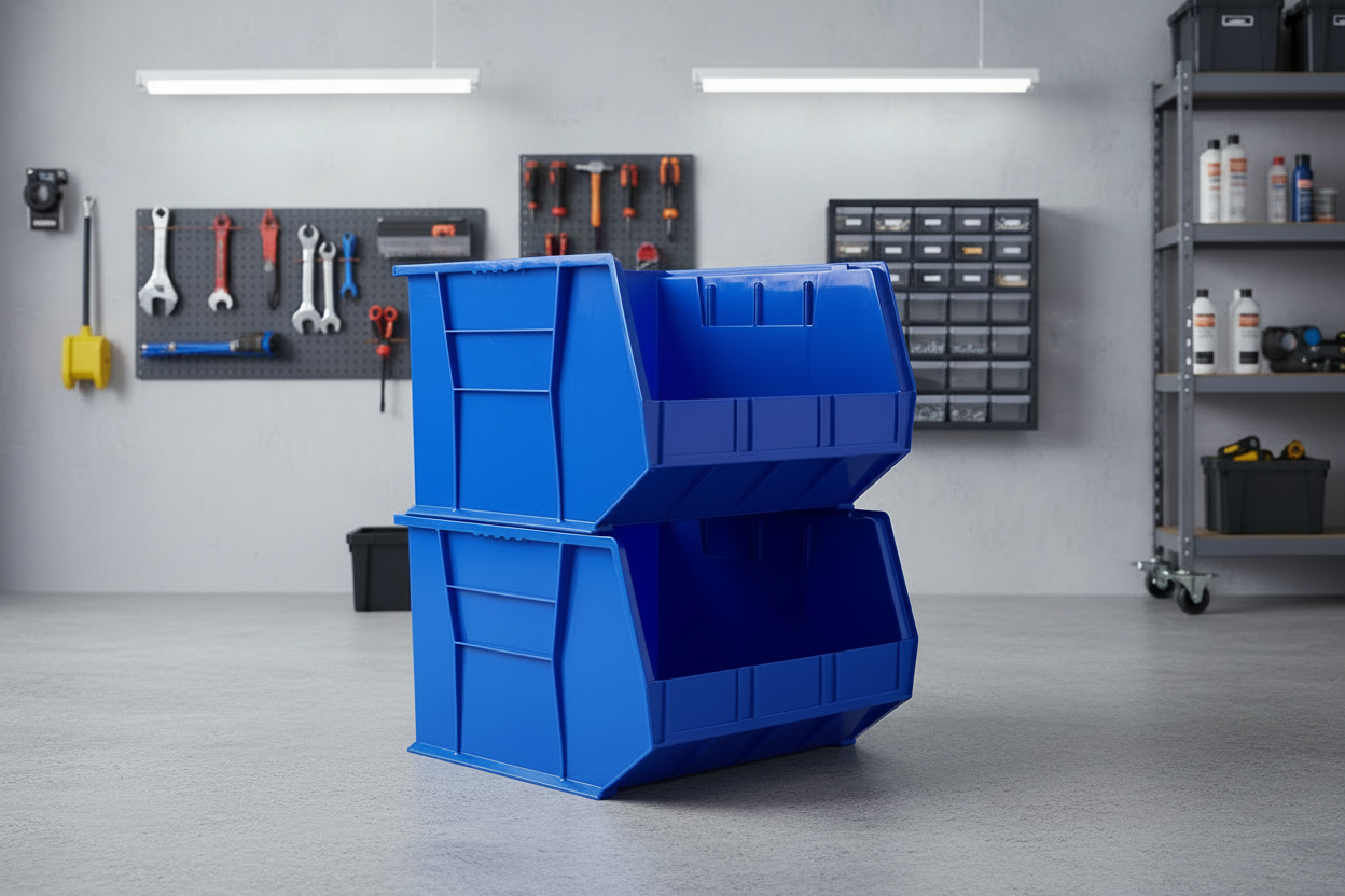 Hudson Exchange brings you their own stackable storage hanging container. Perfect for organizing small parts or home goods. Stackable, hangable & easy access. Continuous construction without seams allows for years of heavy use. Made in the USA. Front, back and side grips for easy handling.