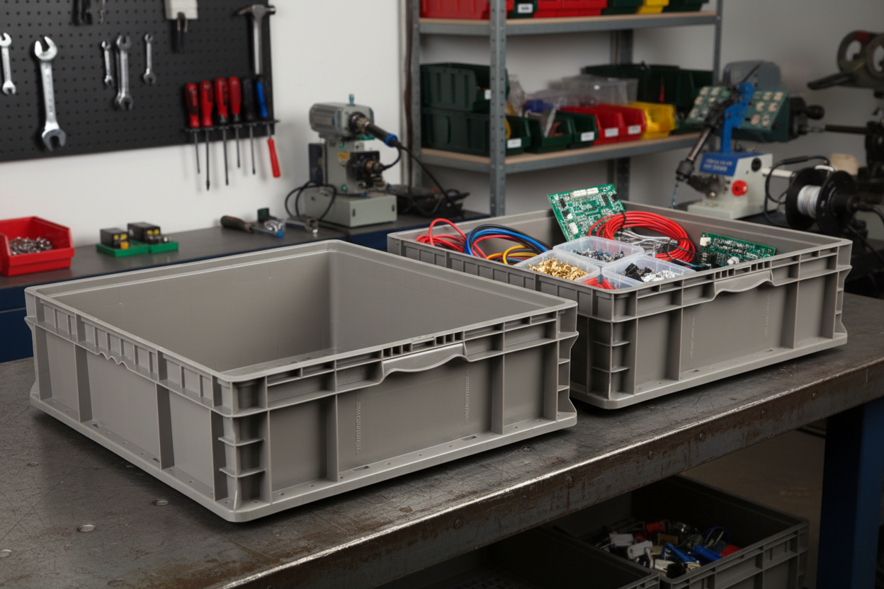 Hudson Exchange straight wall plastic containers for the home and office are available in multiple sizes and compatible with other straight wall totes from our brand. Straight, smooth interior wall design offers maximum space for storage, and our heavy duty plastic makes for easy cleaning. Comfort handles are ergonomic and safe for use around the house or work. Reinforced plastic design makes for a strong and secure stacking container tote.